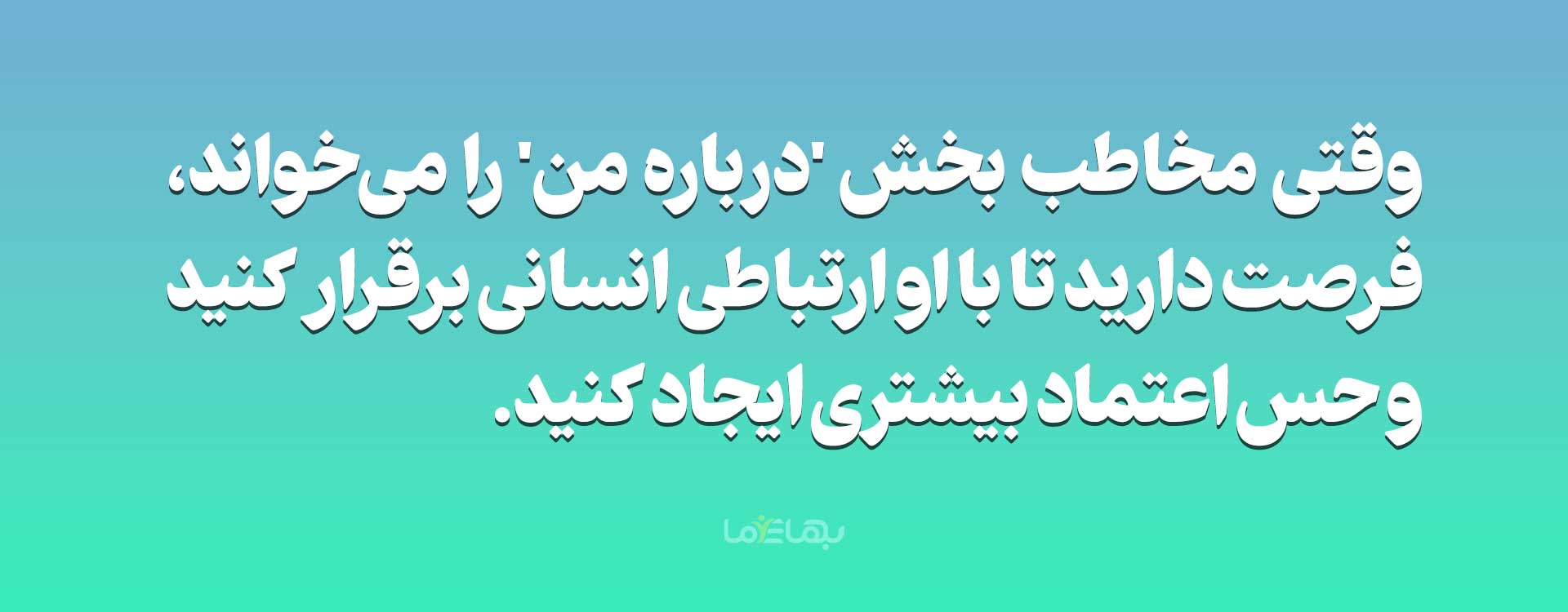 یکی از اصول مهم بازاریابی، ایجاد حس اعتماد است. وقتی مخاطب بخش “درباره من” را میخواند، فرصت دارید تا با او ارتباطی انسانی برقرار کنید. توضیح دهید که چرا این کسبوکار را شروع کردهاید، چه مسیری را طی کردهاید، و اکنون چه هدفی دارید. این داستان شخصی باعث میشود که بازدیدکننده احساس نزدیکی بیشتری با شما پیدا کند و به توانمندیها و تخصص شما اعتماد کند.